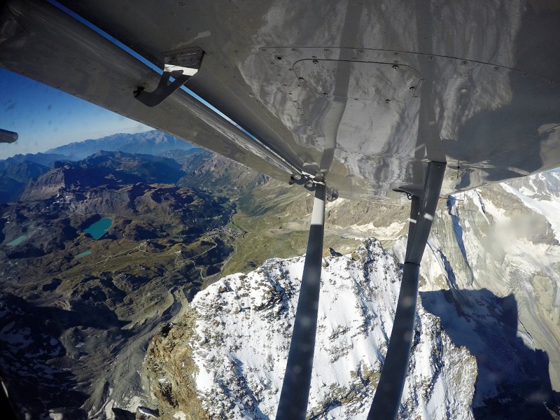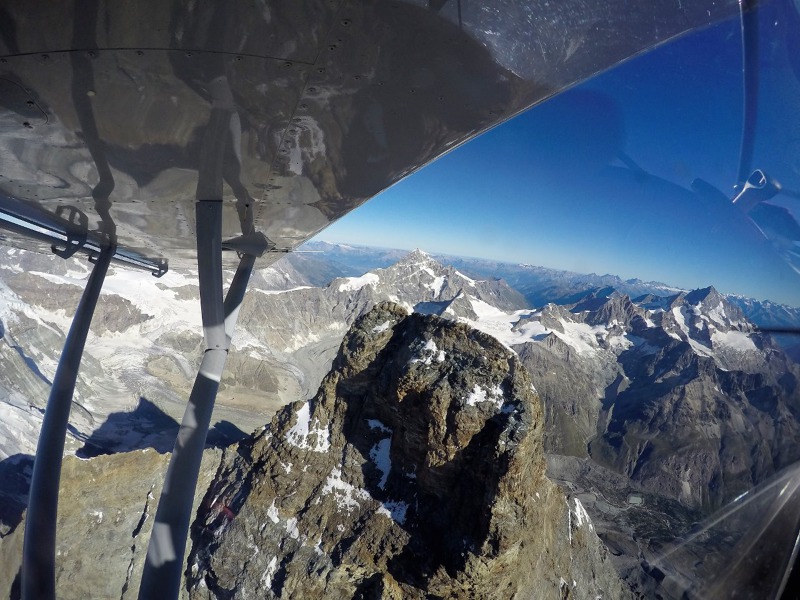 The flight over the Matterhorn and surroundings, aboard a sports plane, was accomplished for the first time with his instructor. "It's less than half an hour from the airport of Biella, where I was doing the course, so we went there on several occasions." Today he fly there once or twice a month. "The Matterhorn is, with its pyramidal shape without nearby obstacles, particularly suitable for a complete fly by," says Daniel. Il Cervino, more precisely Monte Cervino, is none other than the Matterhorn, only in Italian.